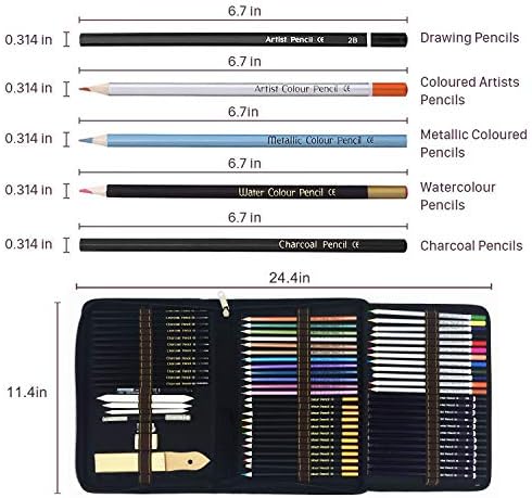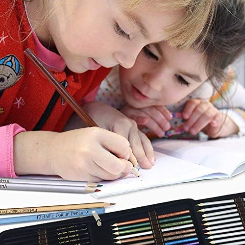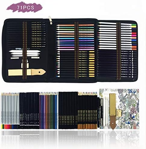 71 Coloured Drawing and Sketching Pencil Art Set in Zipper Case- Adult Colouring Books or Kids School Supplies – Includes watercolor,Metallic,Charcoal Drawing Pencils and Accessories
