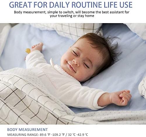 【NON CONTACT INFRARED BODY THERMOMTE】You don’t need to contact body when using this thermometer. it can be detected within a distance of 2 cm to 5 cm. Method of use: the thermometer is aligned with the middle of the forehead to measure body temperature(between the eyebrows above)and keep the vertical distance, press the On/measure button,temperature display immediately.