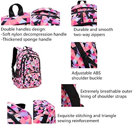 Bansusu Geometric Prints Primary School Student Satchel Backpack for Girls Boys Preppy Schoolbag