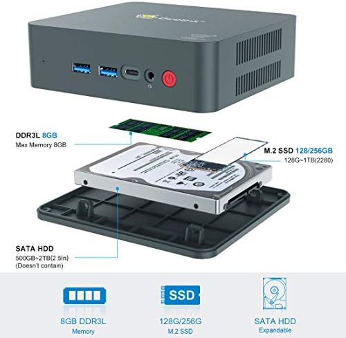 【Large Capacity Expansion】Supports expand max 16GB RAM,expand M.2 2280 SSD(up to 1TB),2.5 inch SATA HDD(up to 2TB),128GB TF card.