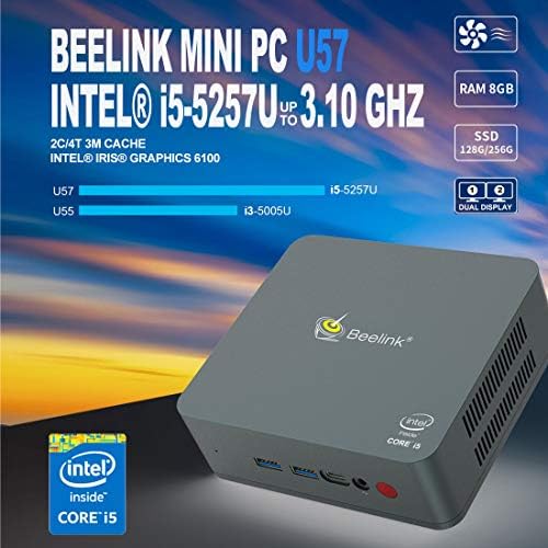 Beelink U57 Windows 10 4K Mini PC, 8GB DDR3L 256GB SSD Intel Core i5-5257U Mini Desktop Computer with Dual HDMI, Gigabit Ethernet, Dual Band Wi-Fi, Support Expand RAM and SSD,Type-C, Fan