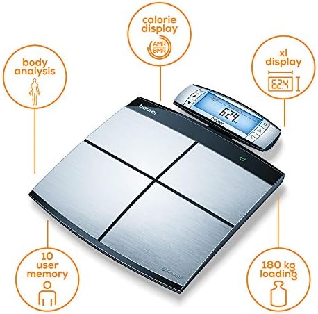 Beurer BF105 Body Complete Diagnostic Bathroom Scale | Detailed full body analysis | Separate upper and lower body measurement | App compatible for full health monitoring | Hand-held remote display
