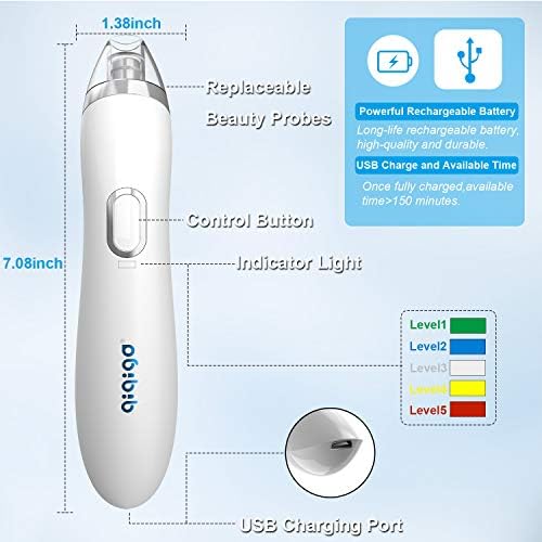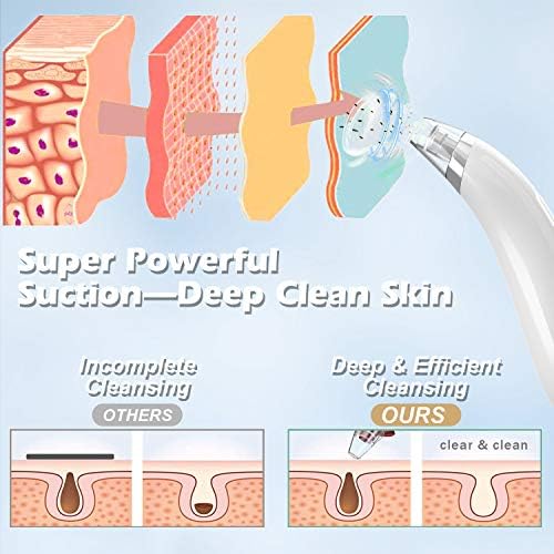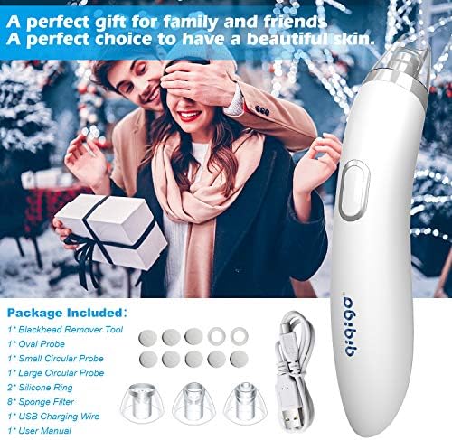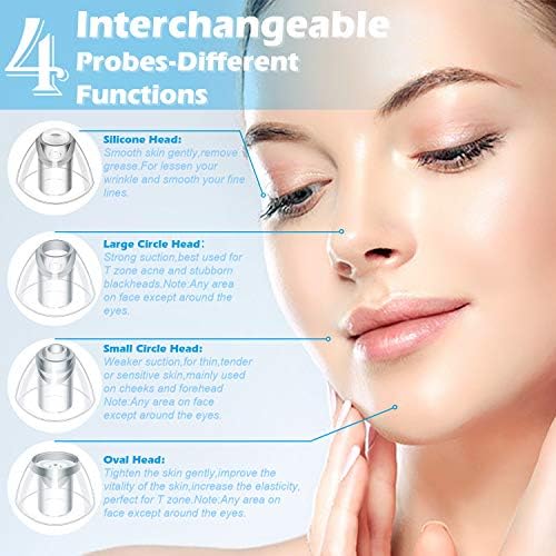 【5 Levels of Suction Forces】The electric blackhead vacuum remover is suitable for a variety of skin types. 5 vacuum modes and 3 replaceable probes are designed for different skin types and different areas of your skin,which can meet your different needs. The light suction level 1-2 are suitable for sensitive and dry skin.The medium suction, level 3 is for neutral skin. The high suction level, level 4 is for oily skin, and the strongest suction level, level 5 is for mixed skin with large pores.