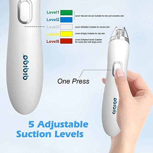 Designed for a variety of skin types.The light suction level 1-2 are suitable for sensitive and dry skin.The medium suction, level 3 is for neutral skin. The high suction level, level 4 is for oily skin, and the strongest suction level, level 5 is designed for mixed skin with large pores.