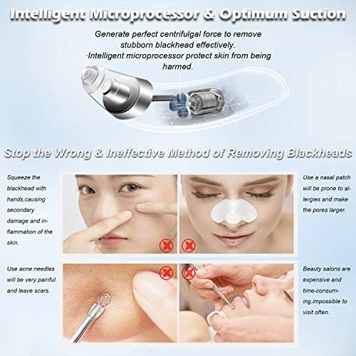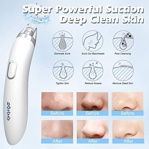 Our blackhead remover tool solves all your skin problems with just one control button,instead of complex multiple buttons.Equipped ultra-powerful suction level,which can effectively and safely remove blackheads, whiteheads, dead skin, grease and makeup residues, also smooth wrinkles etc.
