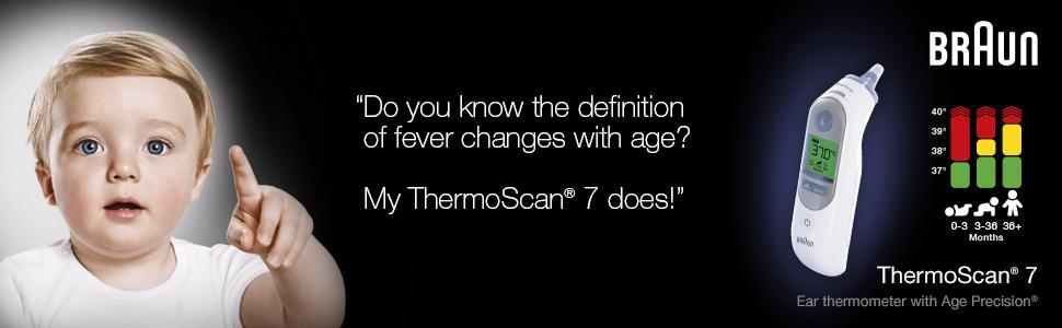 Clinical research shows that the definition of fever changes with a child’s age**. What is a normal temperature in a four year old, can be a fever in a new-born. Many parents are not aware. To help interpret temperature at first sight, Braun have developed the Age Precision technology – an age adjustable fever guidance which takes the guesswork out and brings reassurance when it comes to understanding the temperature.