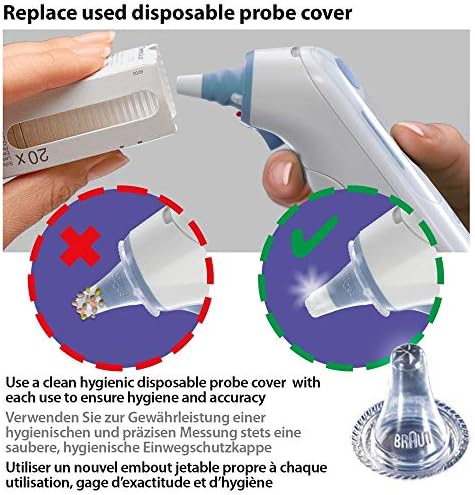 (*) Note: To achieve accurate measurements, make sure a new, clean Hygiene cap is in place before each measurement. The Braun ThermoScan will not work unless a Hygiene cap is attached.