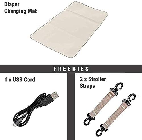 👼 【𝗪𝗛𝗔𝗧 𝗬𝗢𝗨’𝗟𝗟 𝗚𝗘𝗧】1 Diaper Bag (10.6″ x 8.3″ x 16.5″); 1 changing pad (9.5″ x 5.4″); 2 Stroller Straps; 2 USB fast charger cable. If not completely satisfied:100-day warranty, 30-day money-back guarantee, 24-hours professional customer service that will assist you for product concern.