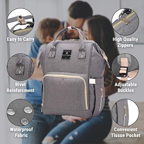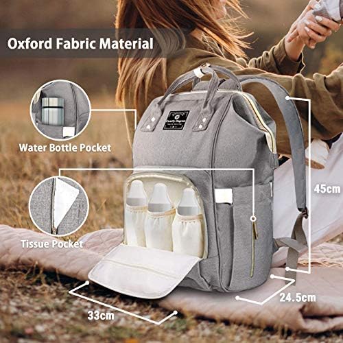 ComfyDegree Nappy Changing Backpack Waterproof Multi-Function Large Capacity Diaper Baby Travel Bag Rucksack w/USB Port, Stroller Straps & 3X Insulated Bottle Warmer Pockets for Mom and Dad (Gray)