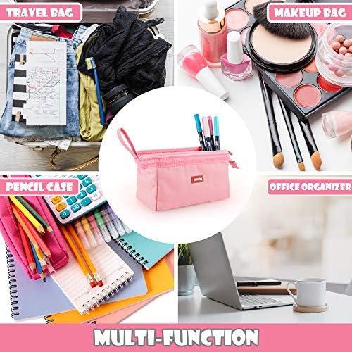 Coolzon Large Pencil Case for Girls Boys, Big Capacity Pencil Cases Pen Bag Pouch Holder School Stationery Organizer Makeup Cosmetic Bag for Kids Women Men Teenagers Students,Pink