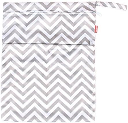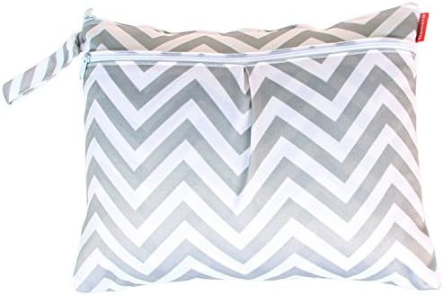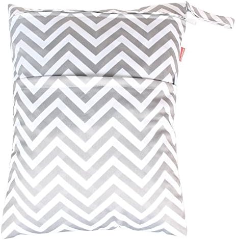 Damero 3pcs Pack Wet Dry Bag for Cloth Diapers Nappy Bag Daycare Organiser Bag, Grey Chevron