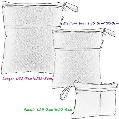 3 size bag. Very functional. Large and medium bag for diaper, bathing suits, the beach towel, gym clothes, swimming suits and more. Small one for your bits and pieces like underwear, socks and other belongings. Double zipper compartments making it much more convenient for you to separate dirty and clean diapers or other wet items. Can also use as a laundry bag.