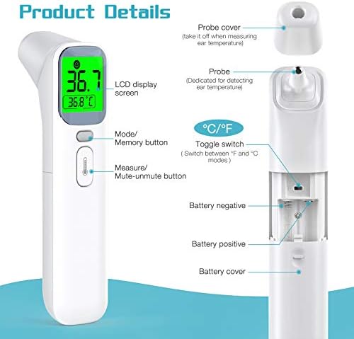 🌡️【Audio Fever Warning】The forehead thermometer has an audible reminder function. Press the temperature Measure/Mute-unmute button and the thermometer will give 1 long beep. When the temperature is abnormal, 3 short beeps will sound to remind you. Long press the Measure/Mute-unmute button to switch it to mute mode, which is suitable for use at night without worrying about waking up babies or resting patients.
