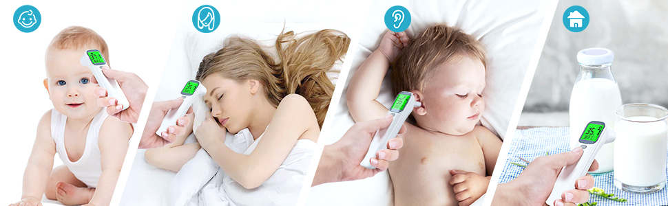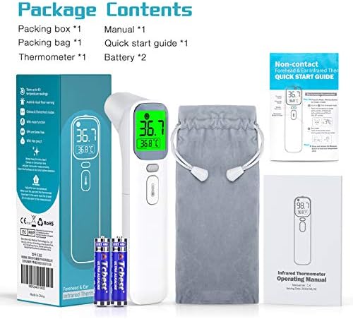-Multifunctional, suitable for measuring adult forehead, children’s forehead, ears, environment and objects.Normal forehead temperature: 36.19-37.5; Normal ear temperature: 35.8-38.0.
