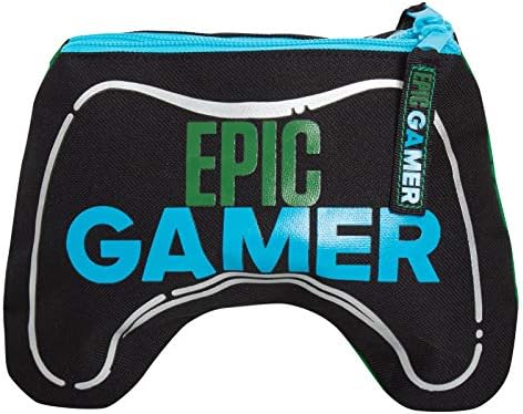 BOYS EPIC GAMER PENCIL CASE Official and Exclusive Ultimate. Designed with the ultimate gamer in mind – whether you are a green brand Xbox fan or a blue brand Playstation fan this pencil case has it covered. Each pencil case features every gamers number one tools – the gaming controller with the popular gaming slogan ” Epic Gamer “. The pencil case is designed with an attention to detail and we have highlighted the gaming equipment in metallic silver to give them a 3d pop effect. The design is in a shape of a gaming controller and has two zip opening compartments with “Epic Gamer” tags on the zip to make opening and closeing easier. Each case is made from a strong, but lightweight canvas material to ensure that it last throughout the school year. The measurements of the case are 20cm x 14cm. They are perfect for school, college, work, or for using to store all of your gaming accessories. This pencil case makes a great gift for every game fan.