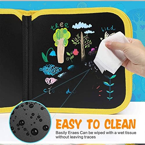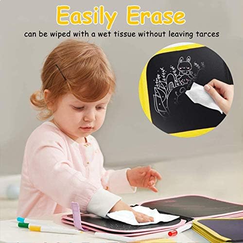 🌸 【SAFE&REUSABLE】 Made of high quality PP material. Durable, lightweight and easy to use. It is safe for children. The drawing book is equipped with 12 special dust-free watercolor pens, which are colorful and can be easily wiped off with a wet tissue without any traces. Cultivate your child’s creativity and imagination!(Note: you need to use wet wipes or wet rags to erase the handwriting)
