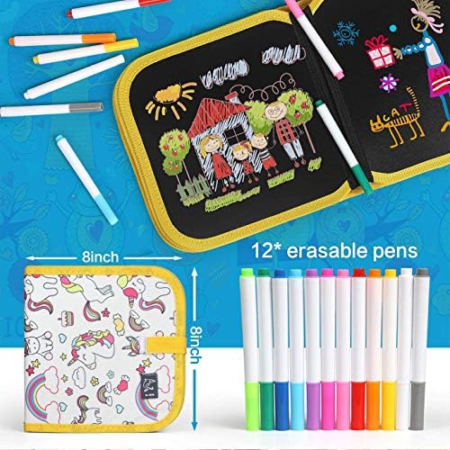 Erasable Graphic Drawing Doodle Board Doodle Book Kids Drawing Pad Colorful Writing Tablet Double Sided Painting Board with 12 Colour Erasable Pens 8×8 in 14 Page for Birthday Gift Christmas Present