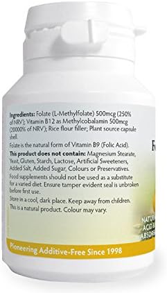 Folate 500mcg & Vitamin B12 500mcg x 90 caps (No Magnesium Stearate)