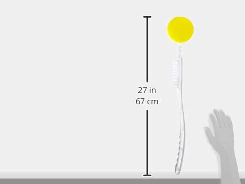 For hygiene of lower extremities while standing or sitting. Useful for people with limited access to feet. It has a plastic contoured handle with a nylon brush for comfortable cleaning of feet. Supplied with one large sponge and two small. Length is 610 mm (24 inches), with 95 mm (33/4 inches) brush, 35 mm (11/3 inches) wedge-tip sponge. Weight 120 g.