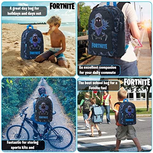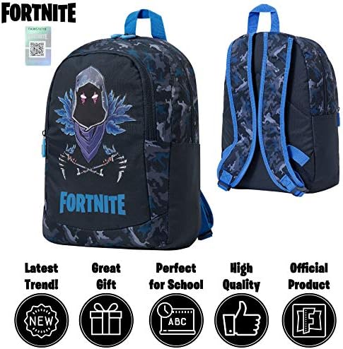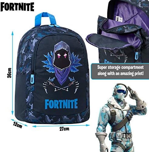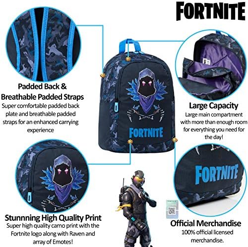 Fortnite School Bag, Backpack For Kids With Raven Skin Design, Large Capacity Rucksack, Official Gaming Merchandise, Gifts For Gamers Boys and Girls