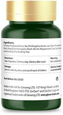 GinSen Antiviral Tablets Anti-Flu Helps Cold, Fever, Sore Throat, Headache, Blocked Nose, Immunity System Booster, Vegetarian, Food Supplement, Natural Remedy (30 Capsules)