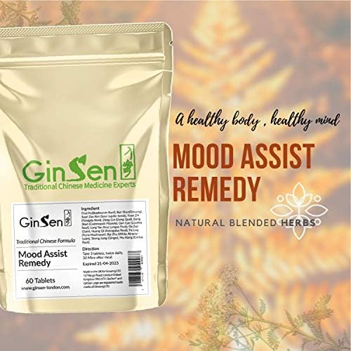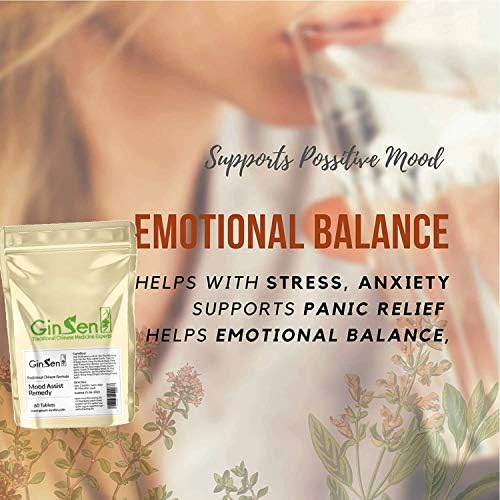 GinSen Mood Assist Remedy Helps with Mood Swings, Stress, Anxiety, Panic Relief, Nervousness, Emotional Balance, Natural Supplement, Chinese Medicine (60 Tablets)