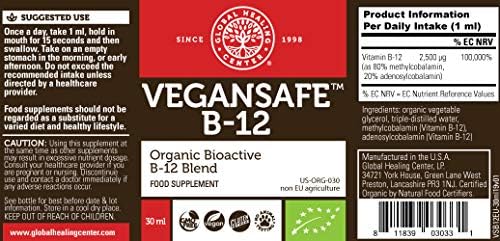 Global Healing Center VeganSafe B12 Organic Methylcobalamin and Adenosylcobalamin Blend, 30 ml