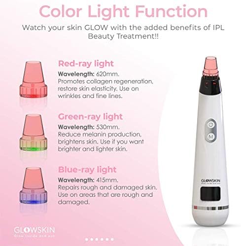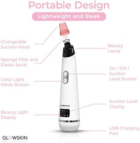 GlowSkin Pore Cleanser Vacuum – Skincare eBook, Colour Light Function, USB Rechargeable, LED Display – Professional Blackhead Remover Vacuum – Face Care Treatment – Smooth Suction Pore Vacuum