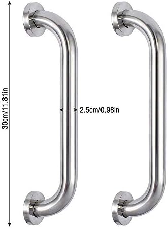 Gobesty Stainless Steel Grab Bar, 2 pcs Steel Safety Support Rail, Bathroom Handrail Disabled Support Home Assist Handle for Bathtub for Elderly, Disabled, Polished Finish – 30cm