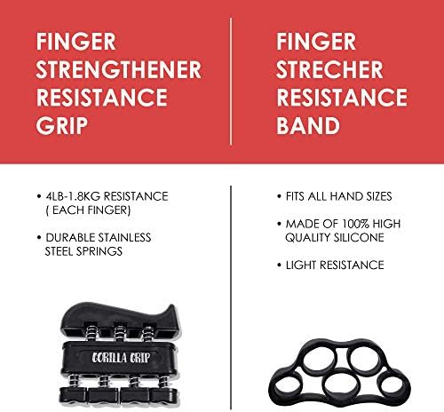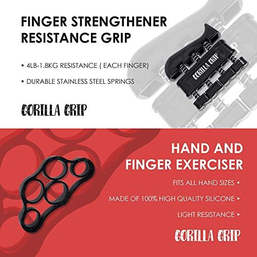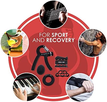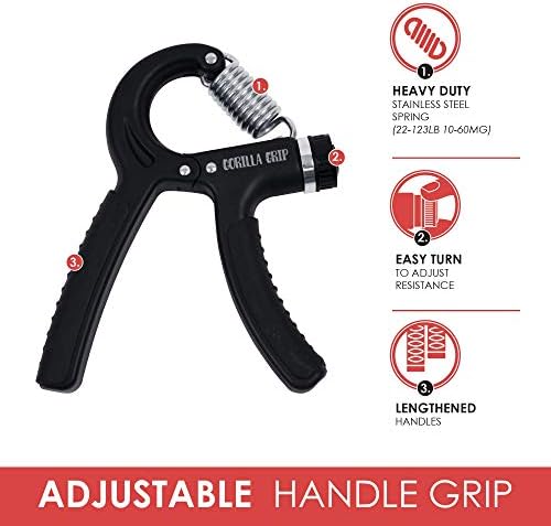 Gorilla Grip Hand Grip Strengthener (5-Piece Set) Adjustable Gripper, Finger Strengthener, Stretch and Exercise Ring, Stress Relief Ball | Build Athlete Strength, Physical Therapy Support