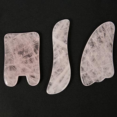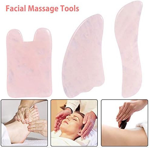 Gua Sha Massage Tool Set 3 PCS Rose Quartz Neck Massage,Gua Sha Scraping Facial Massage Tool for SPA Facial Body Skin Care