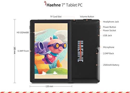 Haehne 7 Inches Tablet PC, Google Android 9.0 GMS, Quad Core 1GB+16GB, HD Display Screen, Dual Cameras, WiFi, Bluetooth, Black