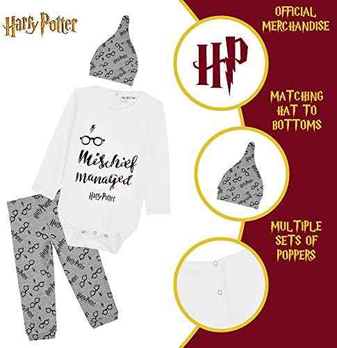Harry Potter Baby Clothes for Girl and Boy 0-18 Months, Newborn Outfit with Long Sleeve Bodysuit, Leggings and Hat, Christmas