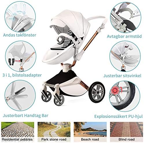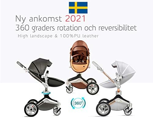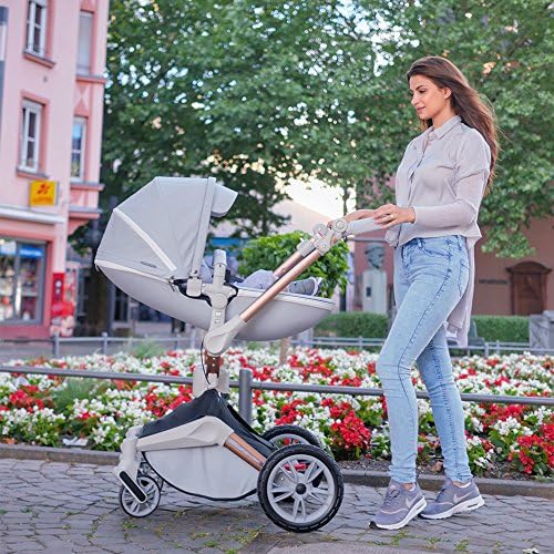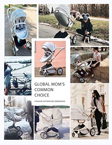Hot Mom Pushchair 360 Rotation Function Baby Carriage Pu Leather Folding Portable Shockproof Travel System Pushchair Pram 2020(Grey)