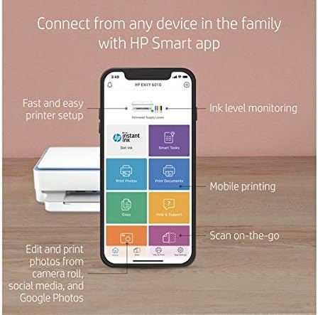 2-month trial of HP Instant Ink: The ENVY 6010 also includes a 2-month trial of HP Instant Ink, which is a more affordable way to buy ink. The printer automatically orders replacement ink when you’re running low, so you don’t have to shop for cartridges.