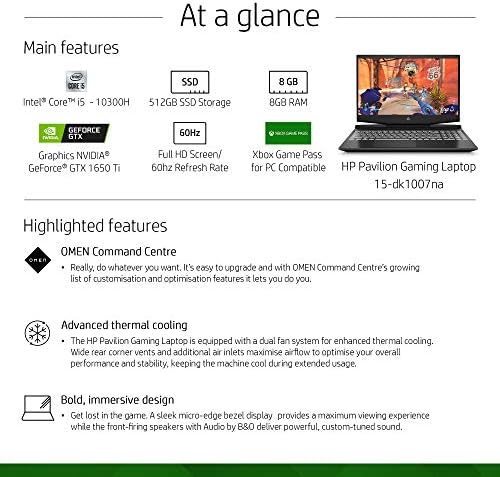 HP Pavilion 15-dk1007na 15.6 Inch Full HD Gaming Laptop – (Shadow Black) (Intel Core i5-10300H, NVIDIA GeForce GTX 1650 Ti (4 GB Dedicated) Graphics, 8 GB RAM, 512 GB SSD, Windows 10 Home)