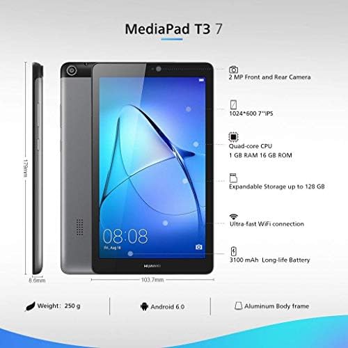Huawei MediaPad T3 7″ Tablet – (MEDIATEK Quad-core 1.4GHz, RAM 1GB, ROM 16GB, IPS-Display) – Space Grey