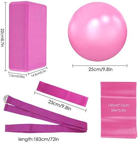 iFCOW Yoga Belt Exercise Ball Set, 5pcs Yoga Set Exercise Ball Yoga Block Resistance Loop Stretching Strap Yoga Belt