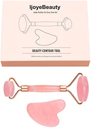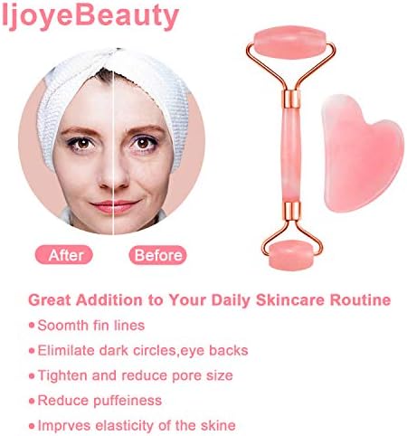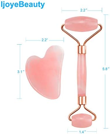 IjoyeBeauty Rose Quartz Roller for Face and Gua Sha Set-Reduce Wrinkles and Tighten Skin Beauty Cosmetic Facial, Roller Massage Tool – Original Handcraft 100% Natural Rose Quartz