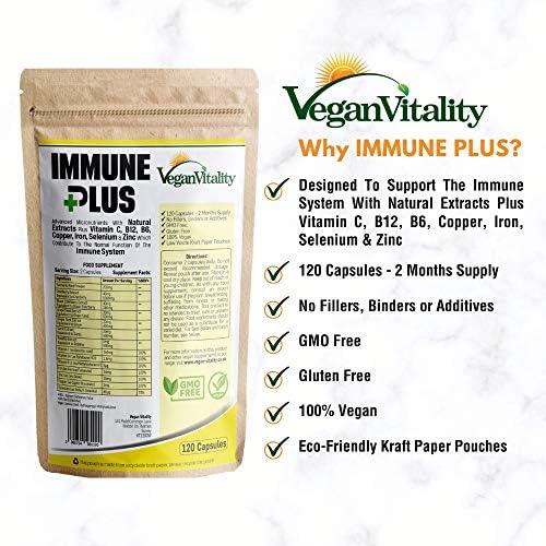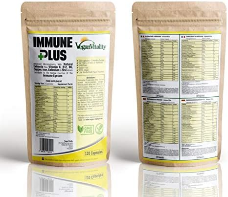 Vegan Vitality IMMUNE PLUS contains a carefully selected formula of 14 different vitamins and highly concentrated natural extracts specifically designed to support your immune system.