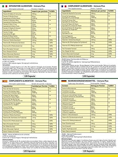 Immune Plus – Immune Booster Supplement – 120 Capsules with 14 Vitamins & Natural Extracts Including Vitamin C, Zinc, Turmeric, Selenium, Ginger, Cranberry, Elderberry, Garlic, Vitamin B12 & B6