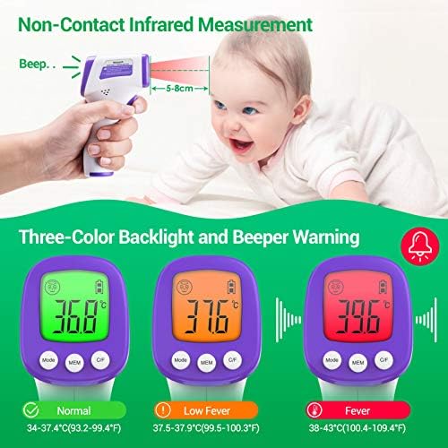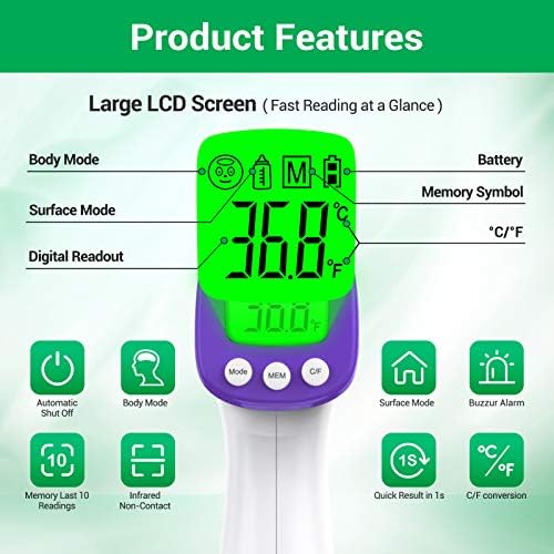 【Easy to use】The forehead thermometer does not require physical contact. It can measure temperature in less than 1s, keeping a distance of 5-8cm from human body.