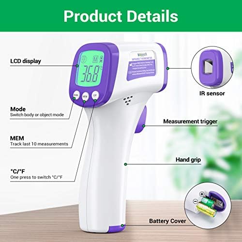 【Memory Function and Auto Power Off】:Wawech forehead thermometer has memory function and can store 10 sets of temperature data, which can help you record better. The infrared thermometer will automatically turn off after 10 seconds of inactivity.