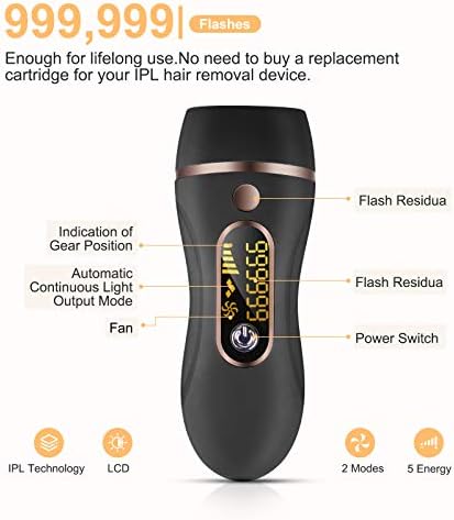 IPL Hair Removal System,Painless Hair Remover Permanent 999,999 Flashes Hair Laser Device for Men and Women for Armpits, Face, Bikini, Arms, Legs, Use at Home (Black)
