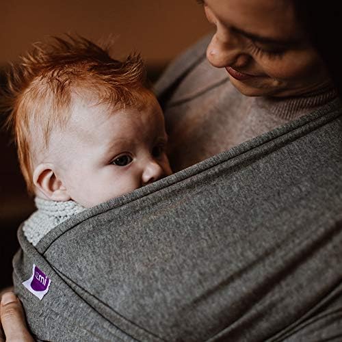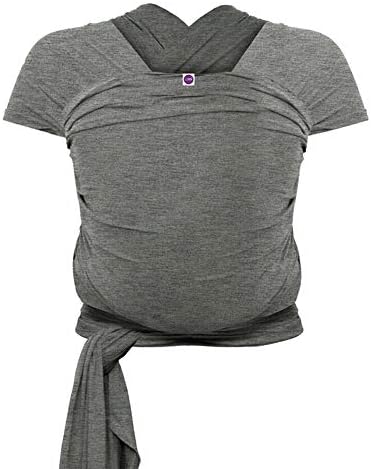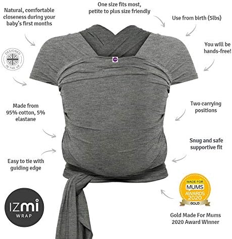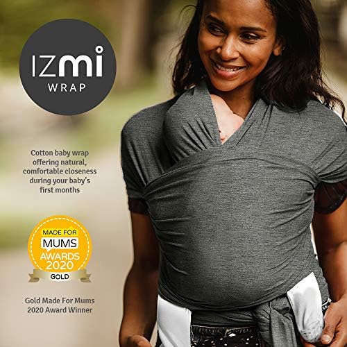Izmi Essential Baby Wrap | Soft Stretch Natural Cotton Material with 2 Hands Free Carrying Positions | UK Hip Healthy Design Ideal Suitable from Birth to 9kg | Dark Grey