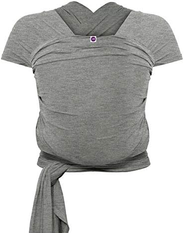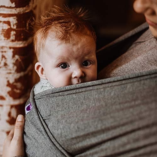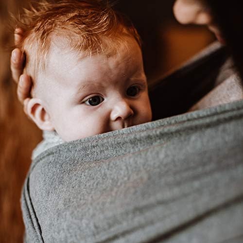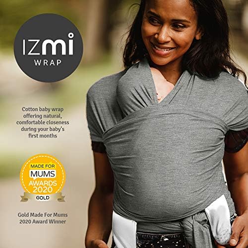 Izmi Essential Baby Wrap | Soft Stretch Natural Cotton Material with 2 Hands Free Carrying Positions | UK Hip Healthy Design Ideal Suitable from Birth to 9kg | Light Grey