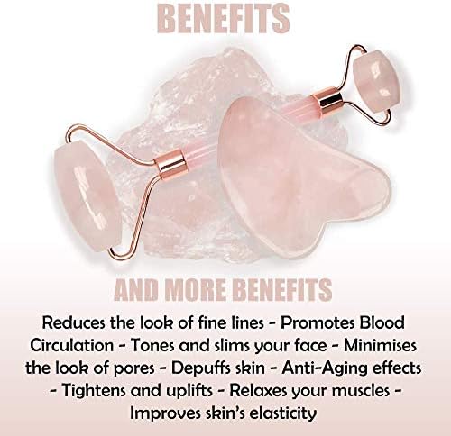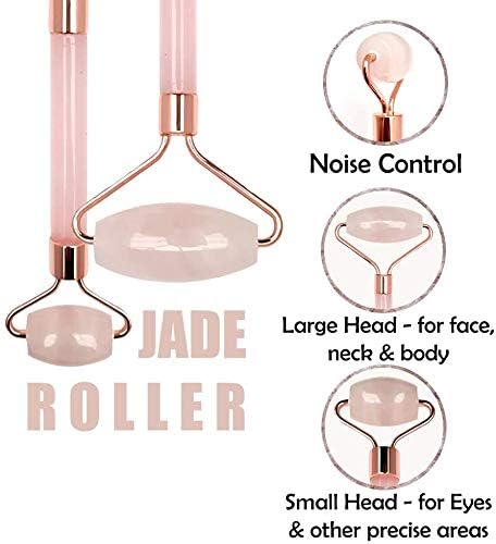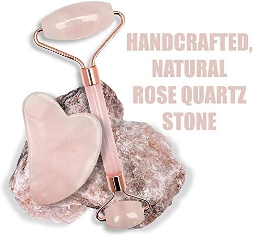 Jade Roller Facial Massage Anti Aging Scraping Natural Jade Message Tool Set for Face Neck Body Slimming Healing Rejuvenation & Beauty Ifresh Upgrade Jade Roller (Jade Roller+Gua Sha) (Rose Quartz)