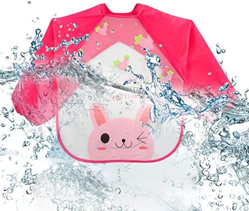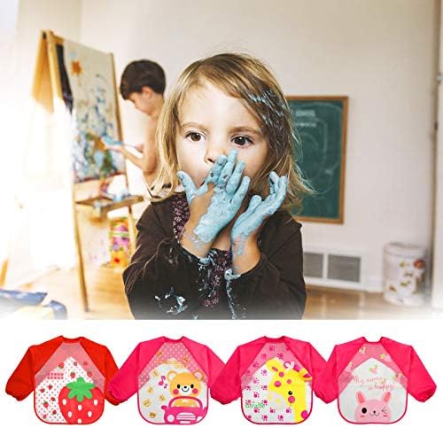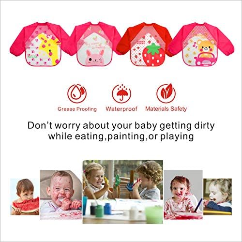 JinBei Kids Bibs with Sleeves 4PCS EVA Baby Bib Waterproof Long Sleeve Weaning Bib Unisex Feeding Food Catcher Cheap Bibs Apron Lovely Cute Cartoon Bibs for Infant Toddler Nursling Playing Painting