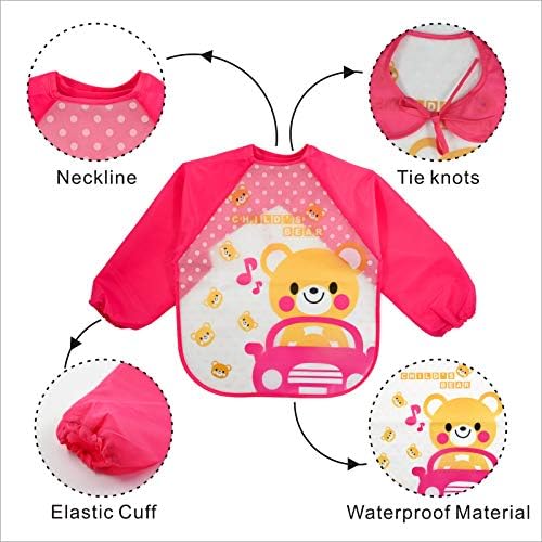 🎨【Fashionable Patterns and Colors】 The baby girl’s long-sleeved bib is composed of cute pink bear, giraffe, strawberry and rabbit patterns. The baby boy bib with sleeves is composed of cute car, lion, frog, donkey patterns. These unique and cute animal pattern designs and excellent stitching effects can attract the attention of babies and make them happier when wearing them.