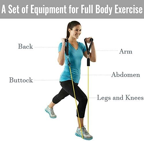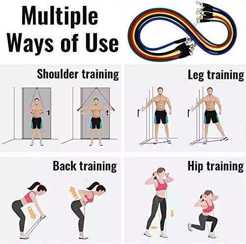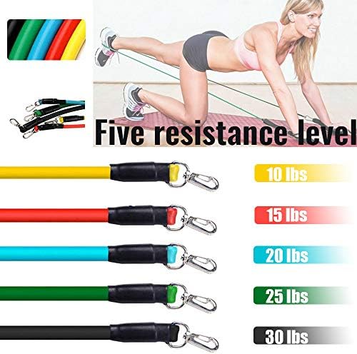 Tube Resistance Bands: The resistance bands come with 5 different resistance level,includes Black (30 lbs.),Green(25 lbs.),Blue (20 lbs.), Red(15 lbs.) and Yellow (10 lbs.).The bands can be used alone or stacked in any combination to achieve your optimal resistance level up to 100 lbs.